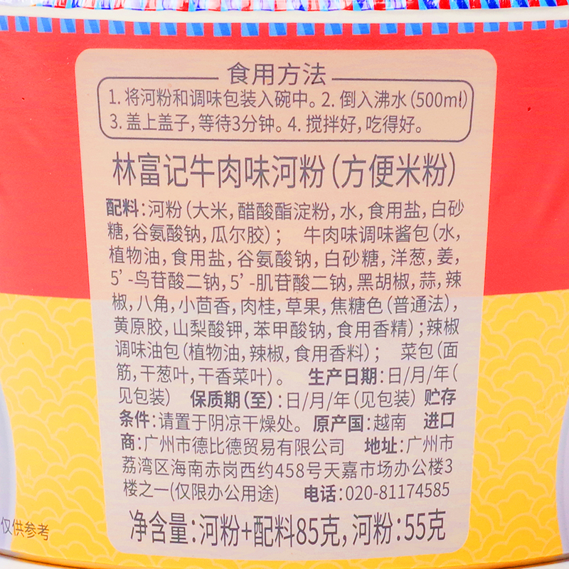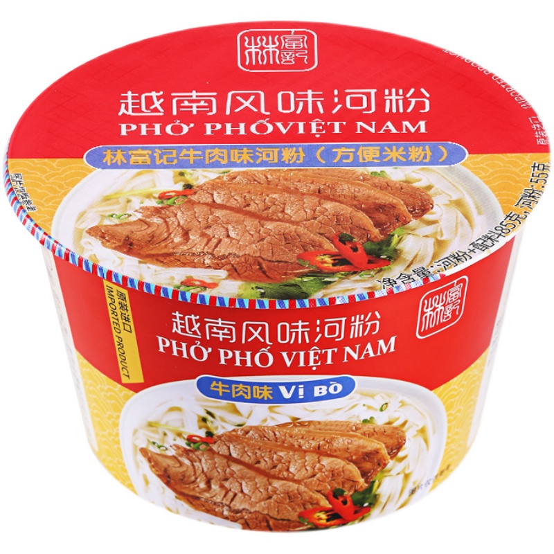 Imported Lin Fu Kee Vietnamese Pho Instant Beef Seafood Chicken Flavor Convenient Rice Noodles Meal Replacement Barreled Bubble Powder FCL