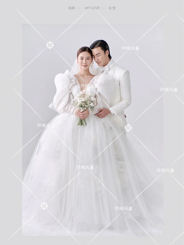 2021 new photo studio theme clothing Korean style wedding photography couple photo puff sleeves photo tutu skirt color yarn