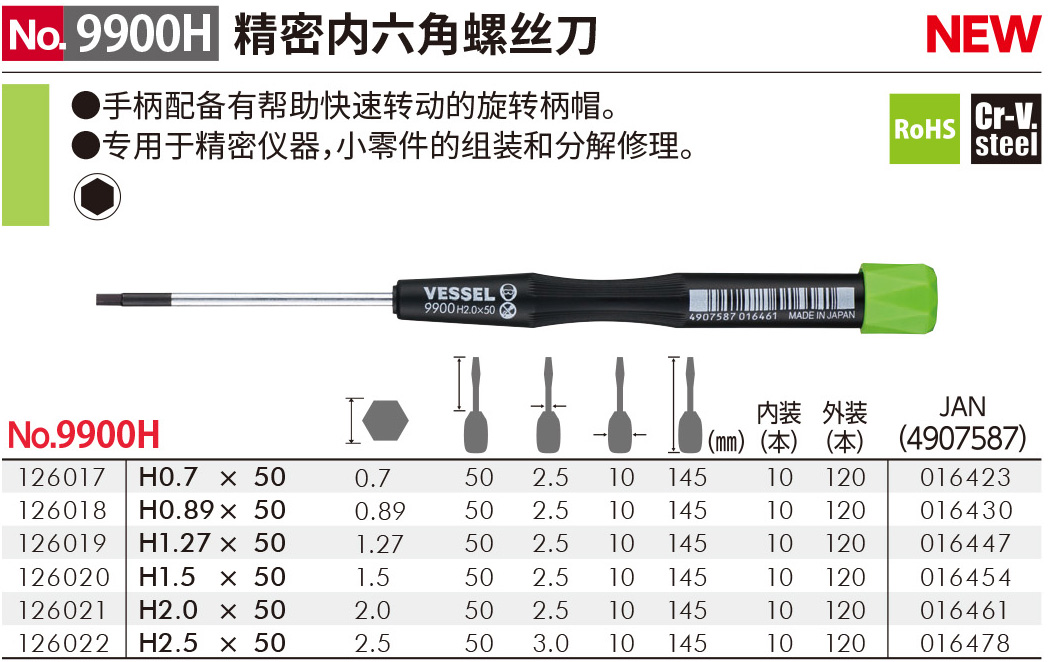 VESSEL Weiwei Japan imports internal hexagonal screwdriver screw driver screwdriver straight shank notebook mobile phone maintenance 0 7