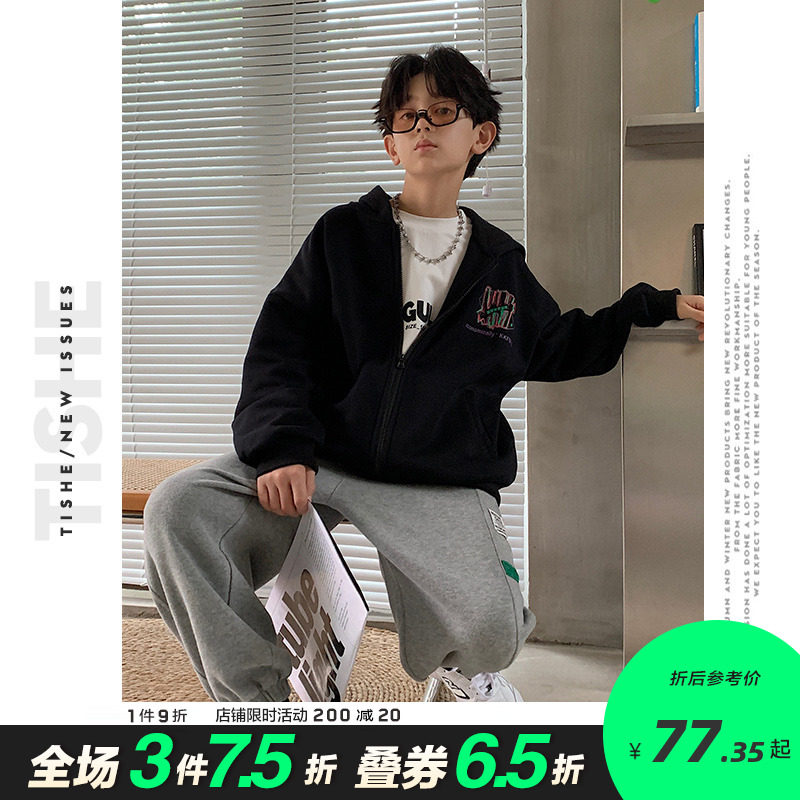 Boy coat winter dress plus suede children CUHK Thickened Thick Cotton T Tandem Hat Cardiovert Teen Winter Boy Tide Card