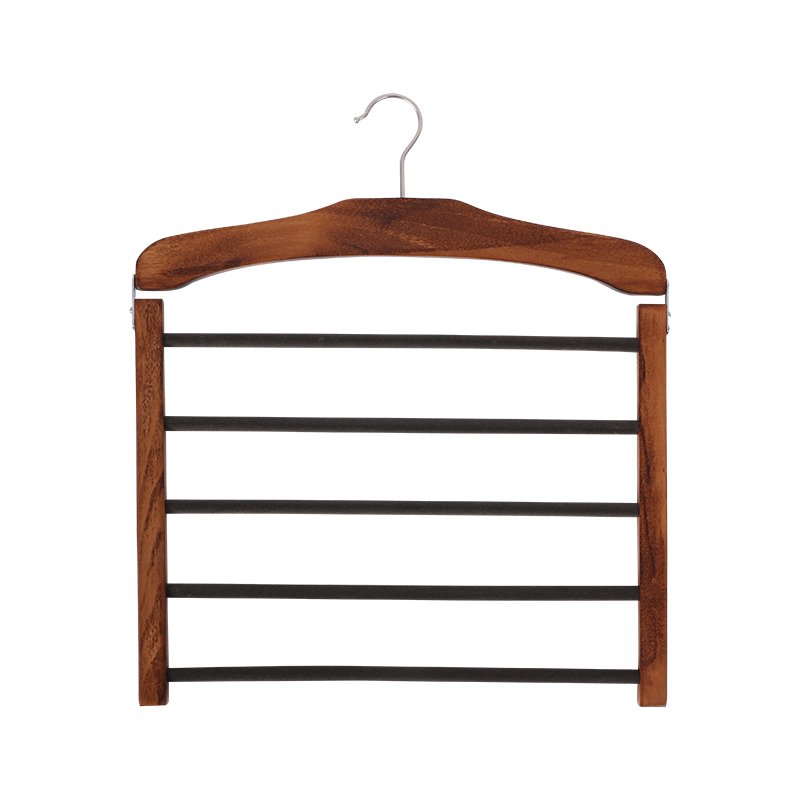 Retro colour-flocking five-story trousers rack (non-slip without dropping) original wood colour-flocking five-layer trouser rack (non-slip resistant) retro-coloured-solid wood five-floor pants frame original wood colour-solid wood five-layer trouser rack