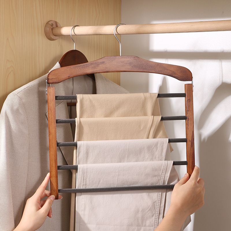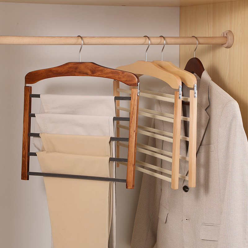 Solid Wood Trouser Rack Flocking Multifunction Folding Hung Trousers Special Hanger Home Multilayer Trousers Hanging Wardrobe containing deviner