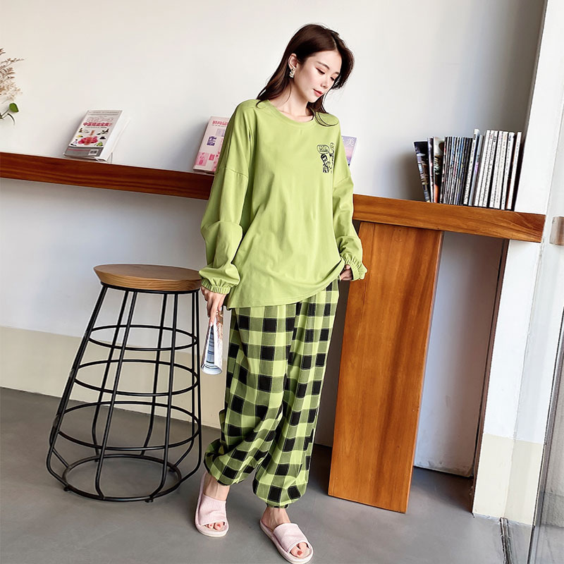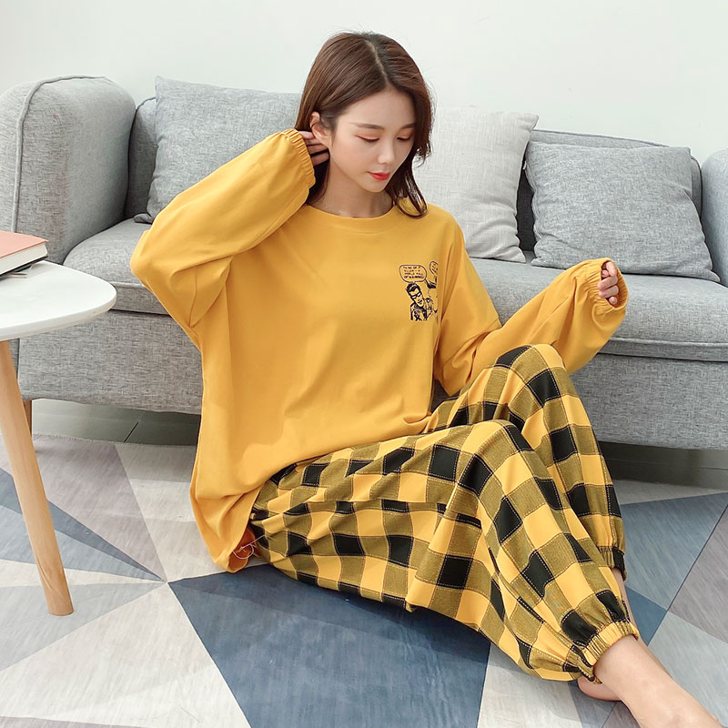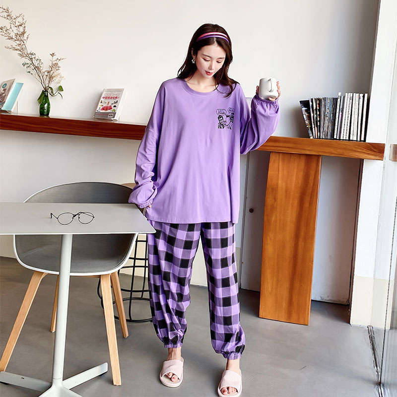 Fat Sister Fall Sleepwear Woman 200 Catty Spring Autumn Increased Code Pure Cotton Round Collar Long Sleeve Home Suit Suit Can Be Worn Out