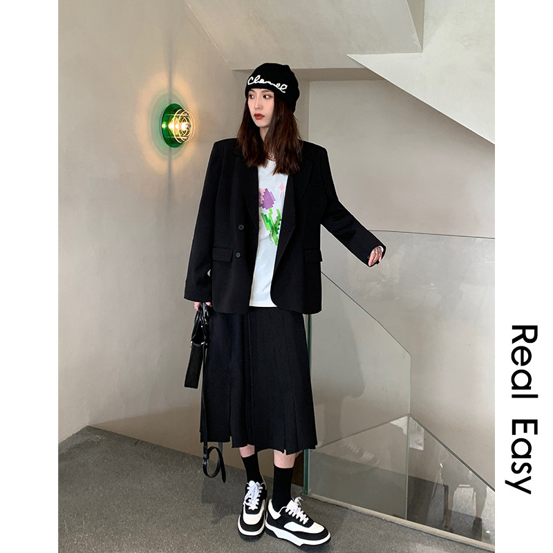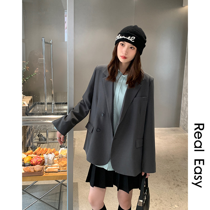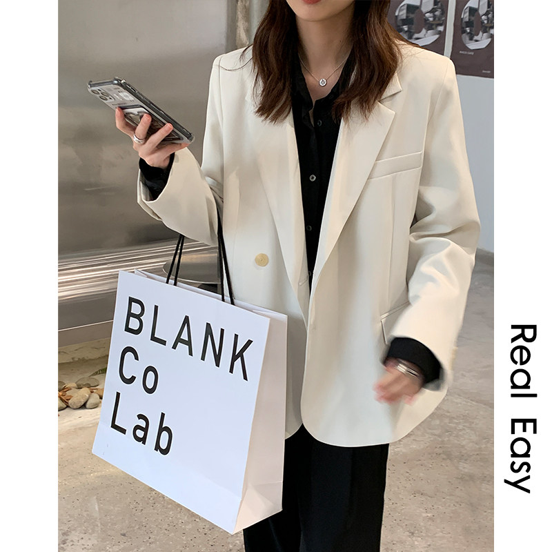 AI Soul Right Angle Shoulder Suit Jacket Woman Spring Autumn Loose Cushion Shoulder Card Its Color Casual Curry Superior Western Suit-Taobao