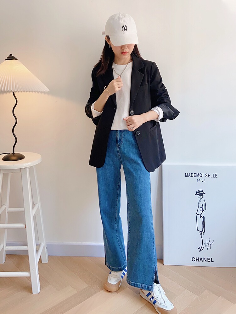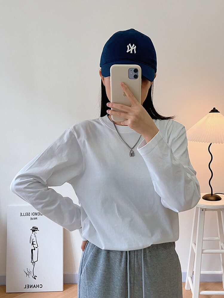 (Jinghao shop) White round neck T-shirt 150 small people wear 2021 autumn solid color loose bottoming shirt