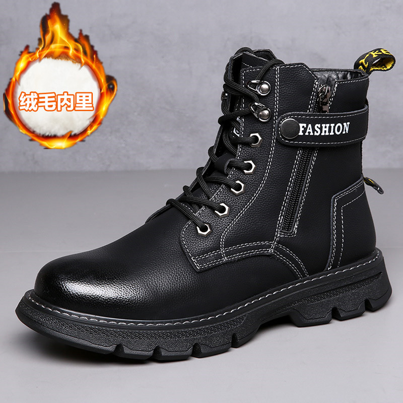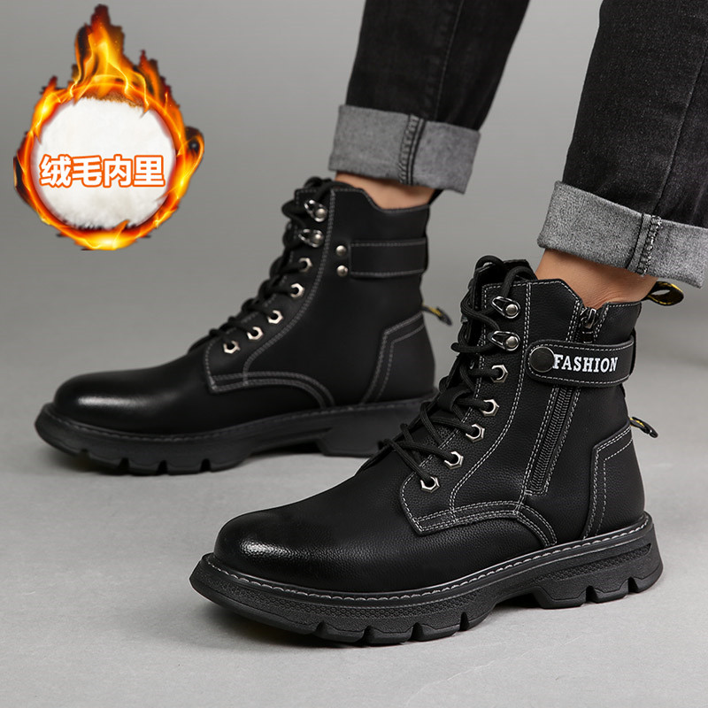 Spring fur Martin boots men invisible heightened shoes men 10cm warm high gang British wind cotton wear boots