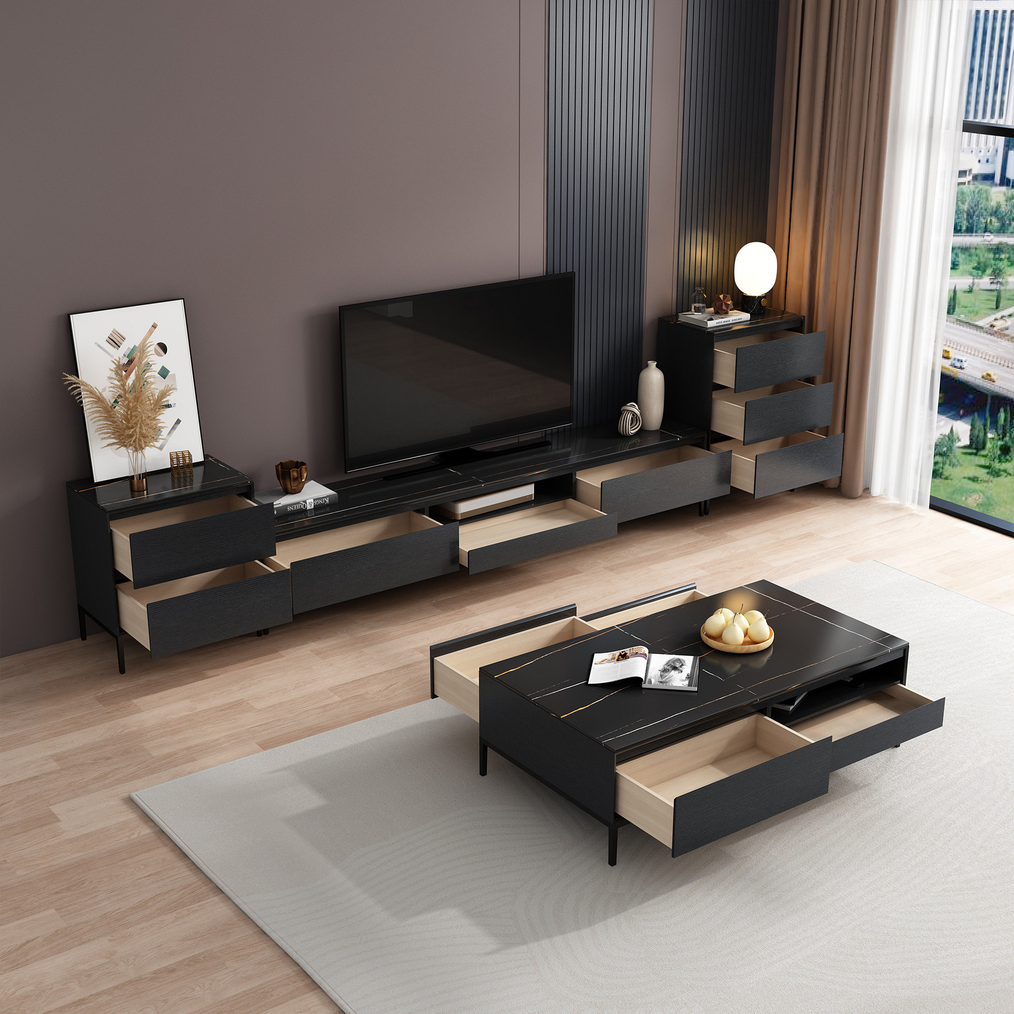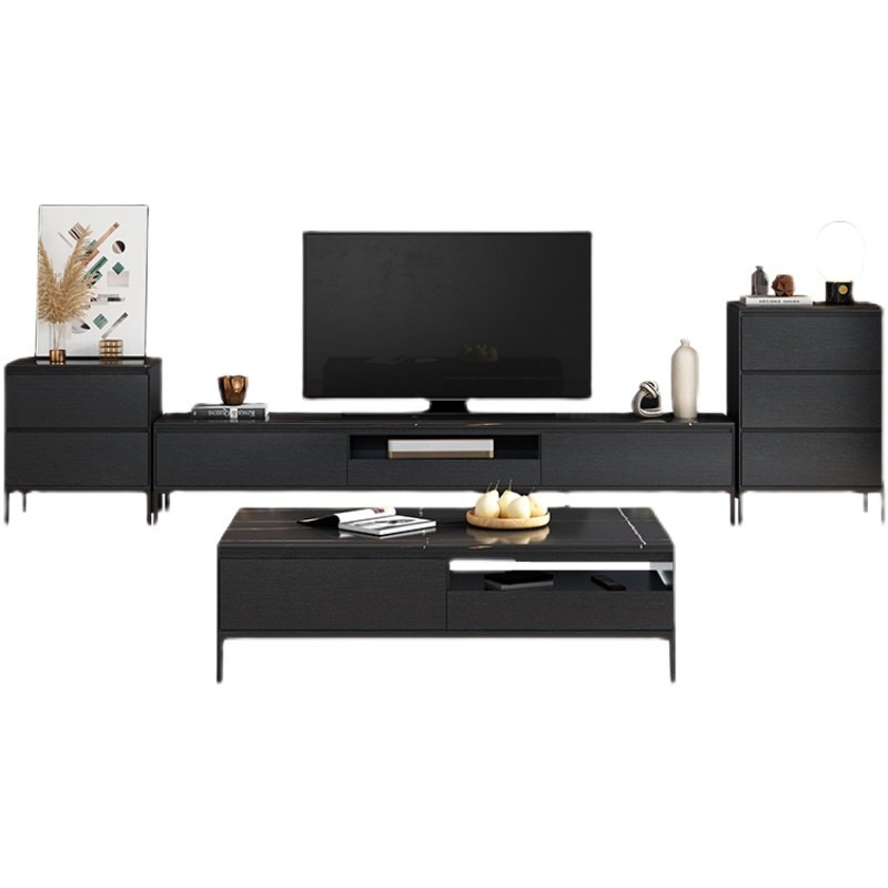 Rock plate TV cabinet Tea Table Composition Modern Minima small household type Fancy Light Lavish Black Full Solid Wood 2022 New