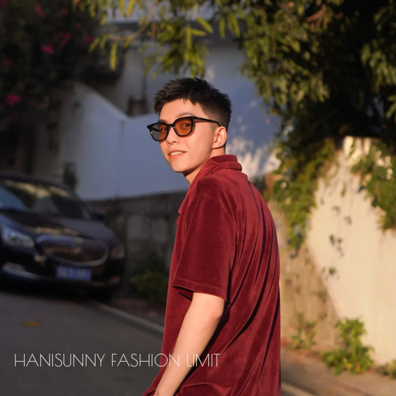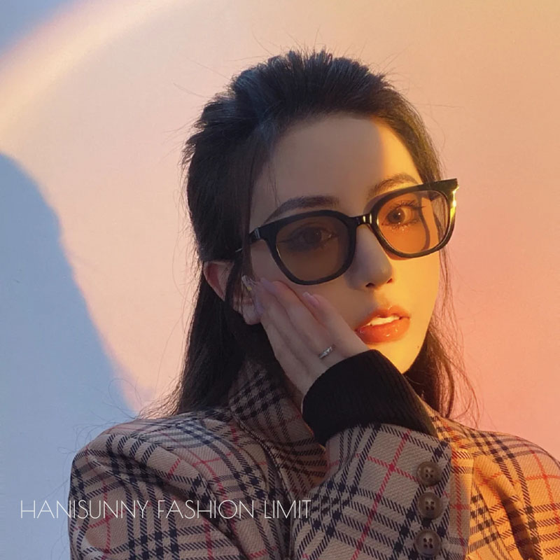 HANISUNNY retro tea orange sunglasses black frame change tea colour myopia glasses large frame with degree male and female neutral