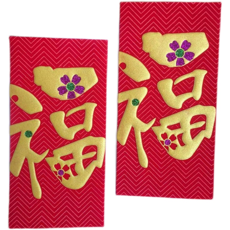 Fu Character Red Packet Bag Upscale Thickening Flocking is a seal Chinese New Year Lithing seal blessing gift gold bag minimalist size-Taobao