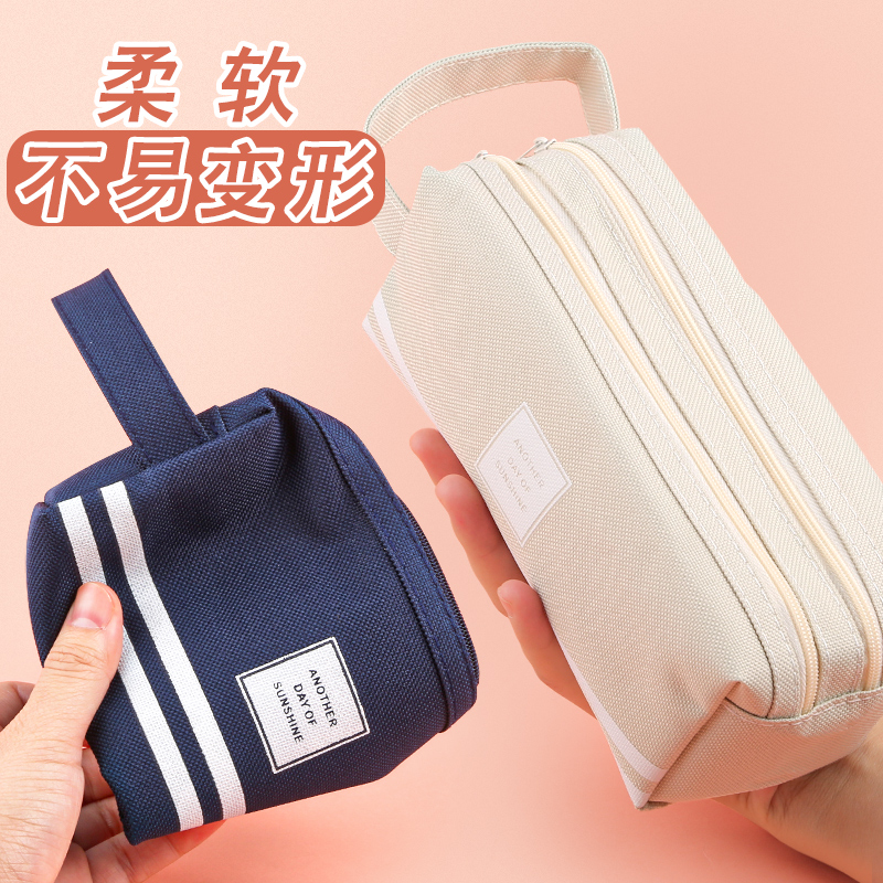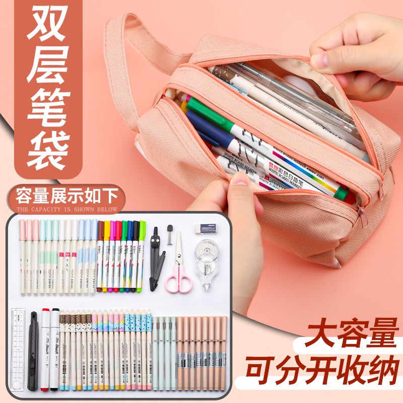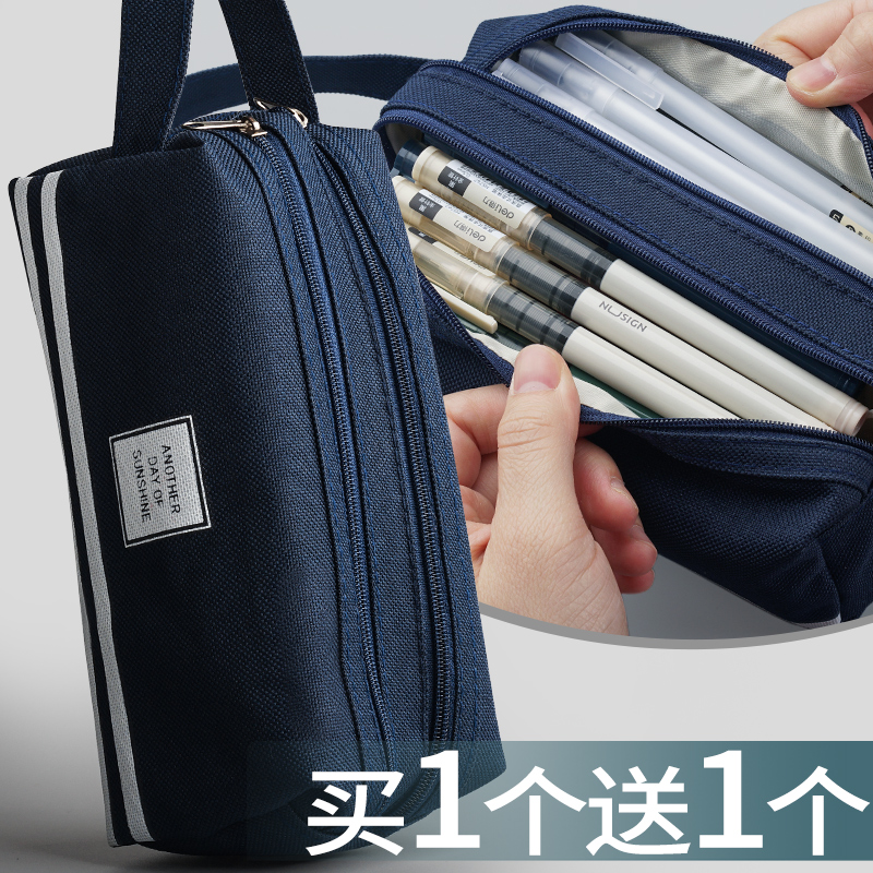 Pen bag large-capacity simple ins Japanese high-value boys primary school students 2021 new popular middle school students high school junior high school students stationery men's stationery box women's canvas double-layer pencil case