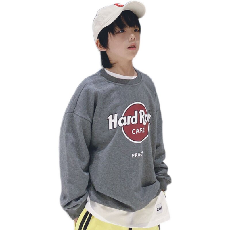 2022 Spring loaded new children's clothing casual blouses Japanese version of Korean version Chauded boy necropolis long sleeve round collar pure cotton cover headcoat