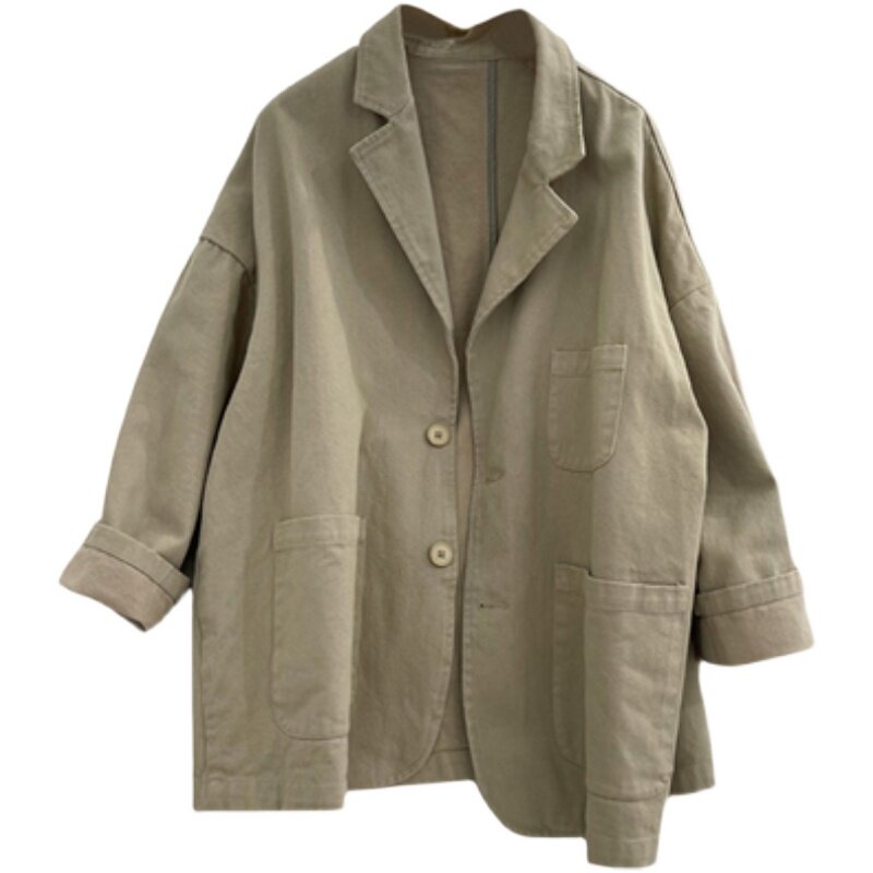 Japan SLY Spring Autumn Leisure Large Pocket Tooling Wind Blouse Women Loose 100 Hitch Two-Grain Buttoned Suit Jacket