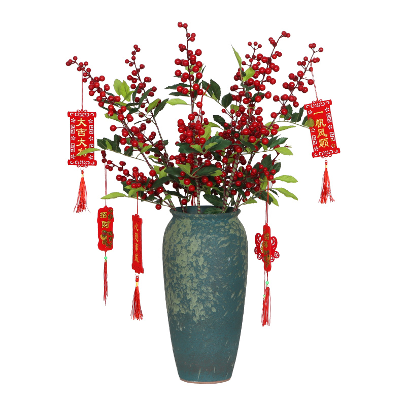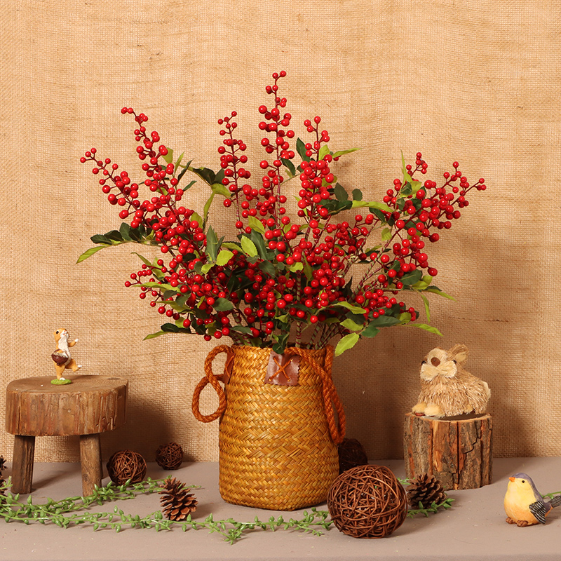 Fortune holly fruit 4 black clay pot vase 16 fork 5 fortune fruit black clay pot vase with leaf fortune fruit 10 dark straw basket with rope 9 fork fortune fruit 6 light color rectangle