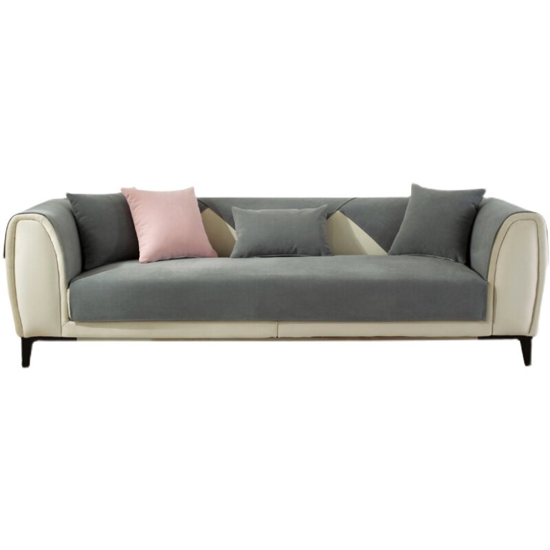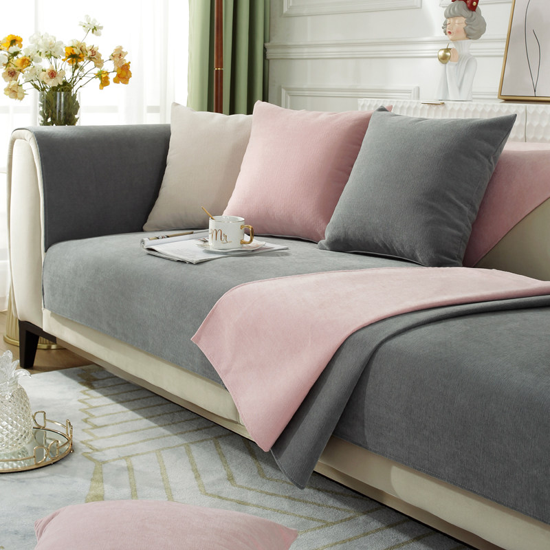 Pure colour Syneille sofa cushion Four seasons universal minimalist modern upscale grey leather anti-slip sofa cover towel full cover