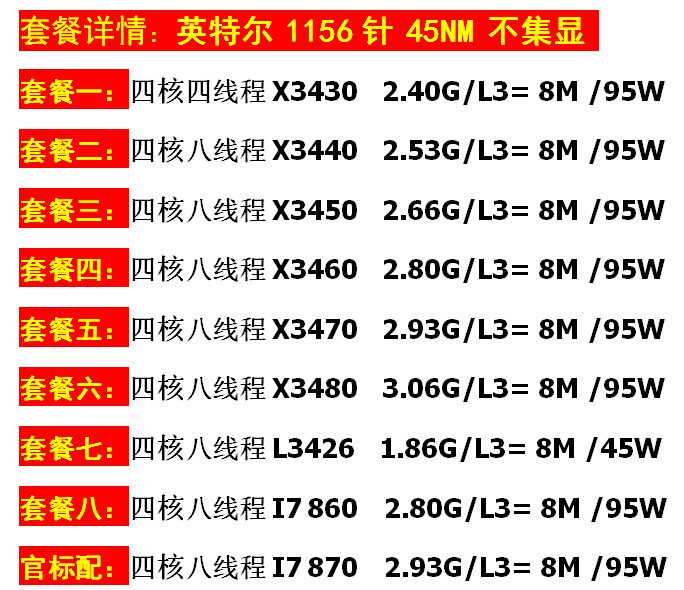 X3430 X3440 X3450 X3460 X3470 X3480 I7 860 870 Quadriple 1156 needle CPU