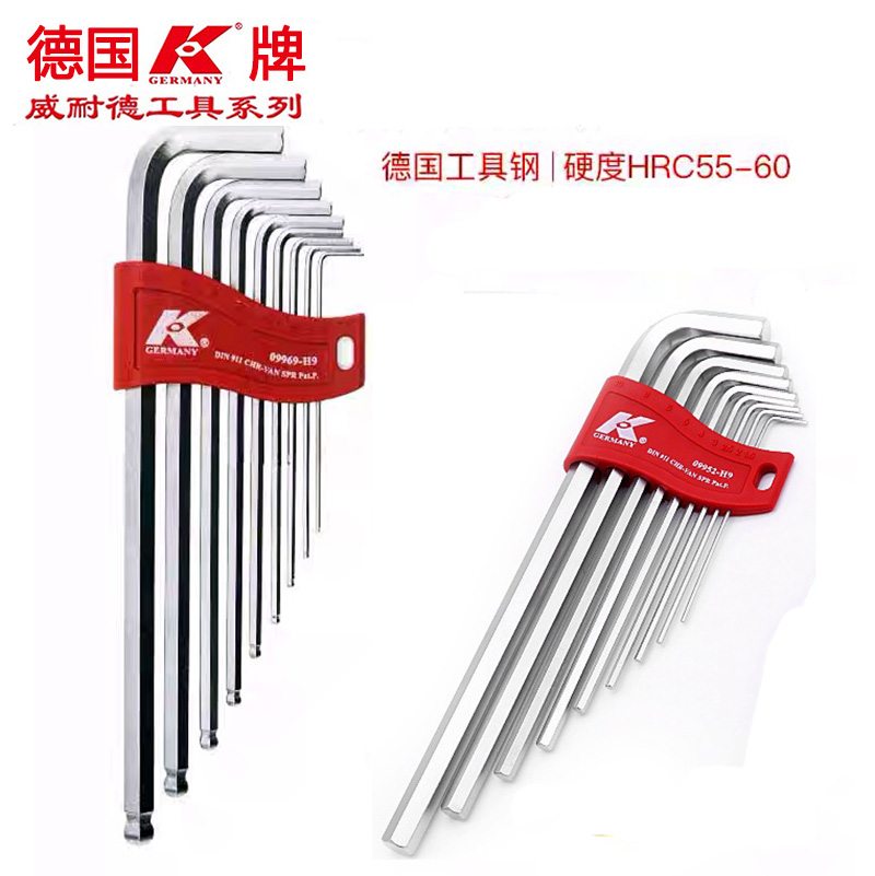 Imported German K brand metric inner hexagonal wrench set lengthened ball head flat head hexagonal tool torque wrench