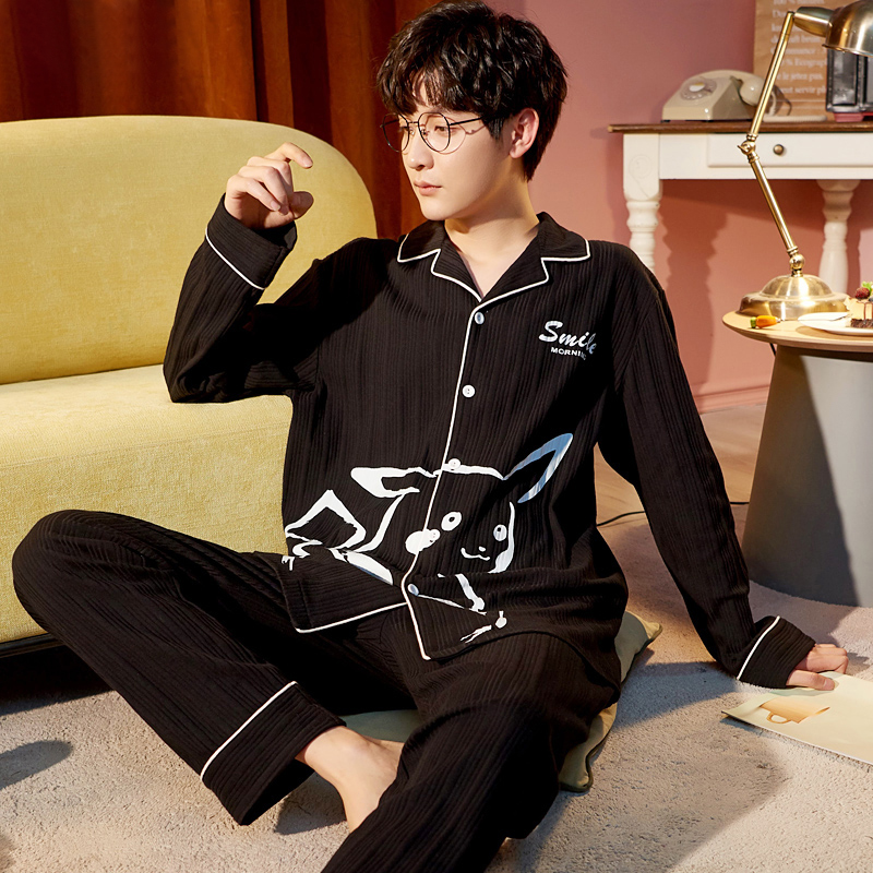Not monotonous ~ early autumn limited edition men's sleeping yi spring and autumn pure cotton long-sleeved printing cartoon home clothes