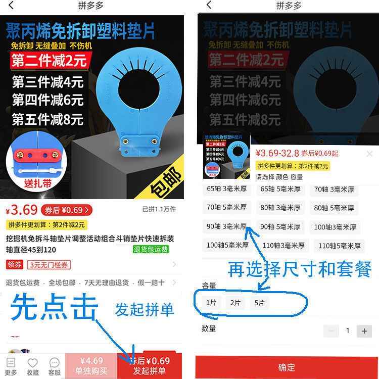 Excavator-free gasket bucket shaft gasket adjustment activity combination bucket pin gasket quick disassembly shaft diameter 45 to 12