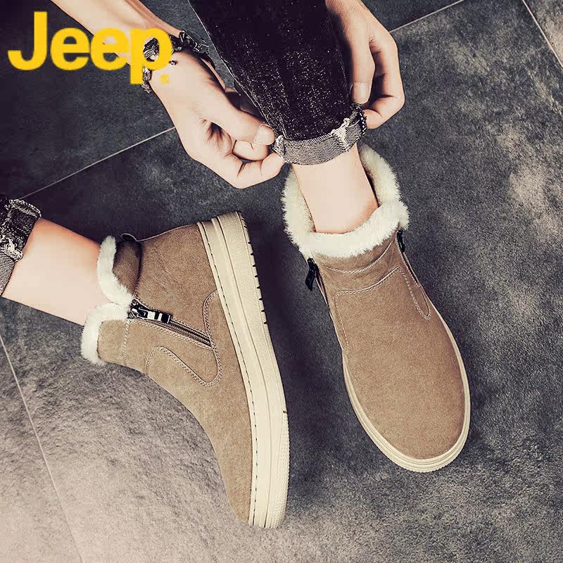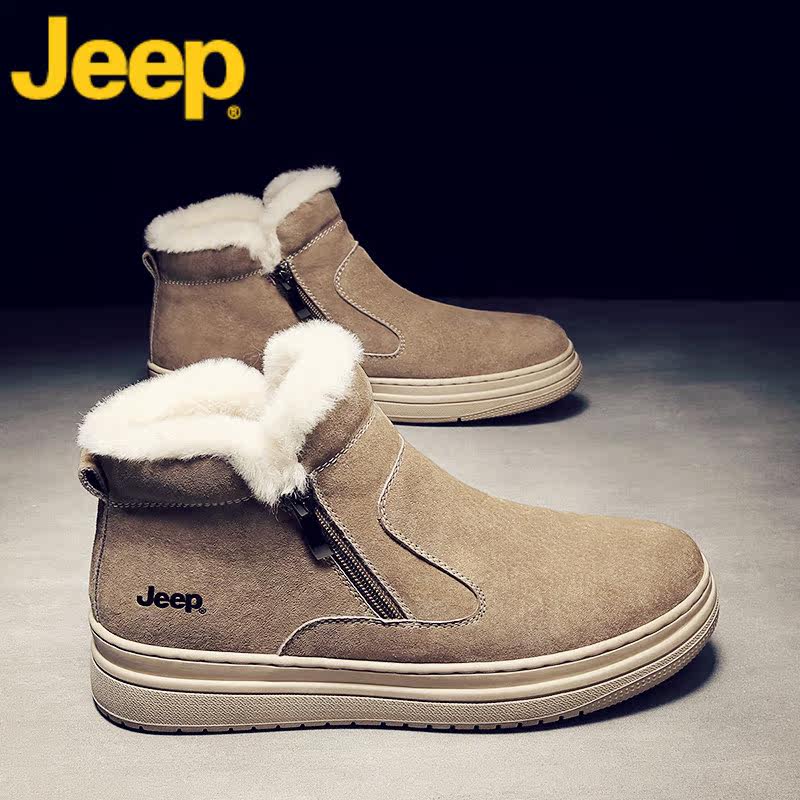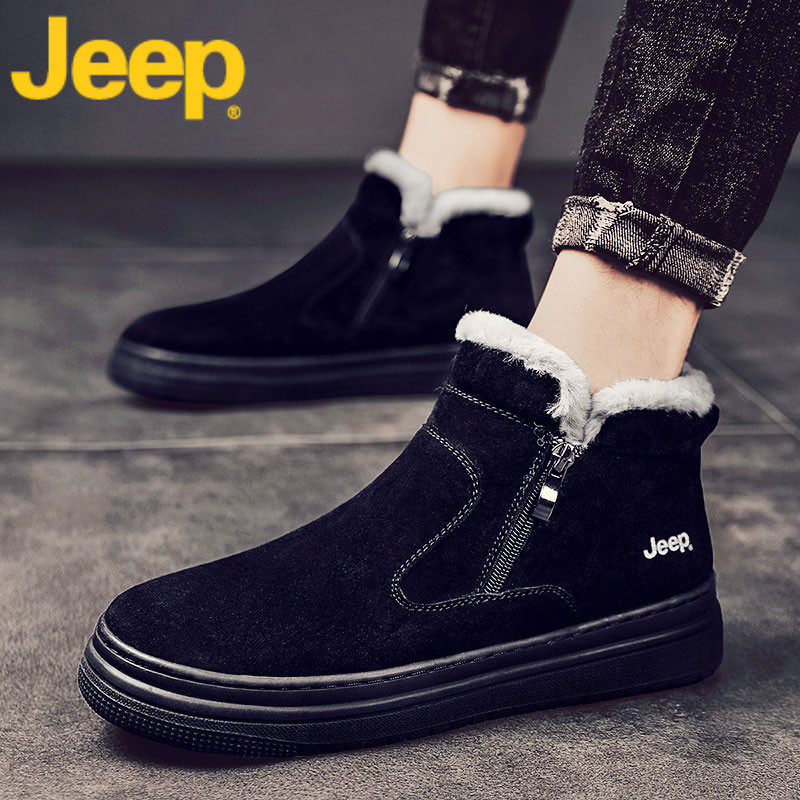 jeep jeep martin boots men's high-top shoes men's shoes winter models plus velvet warm mid-tube snow boots cotton shoes men's