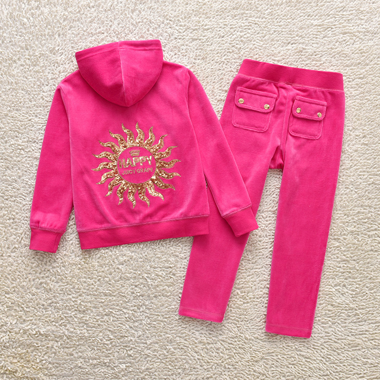 Spring and Autumn Girls' Sports Suit Juicy Grape Children's Velvet Sweater Suit Fashion Casual Children's Clothing