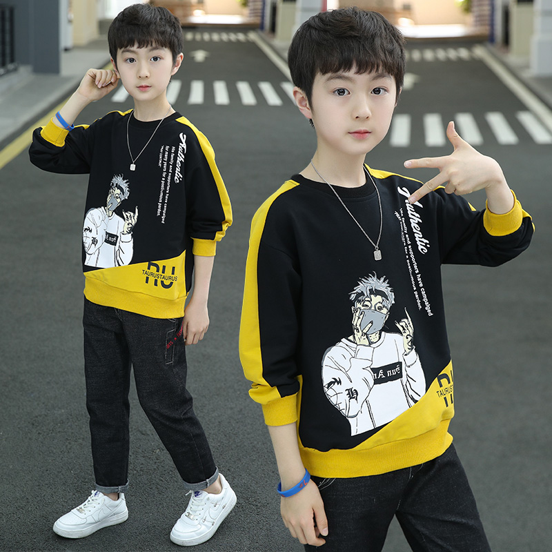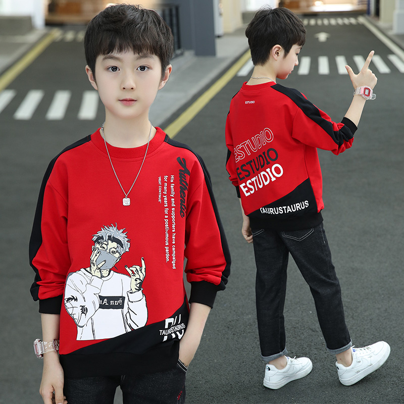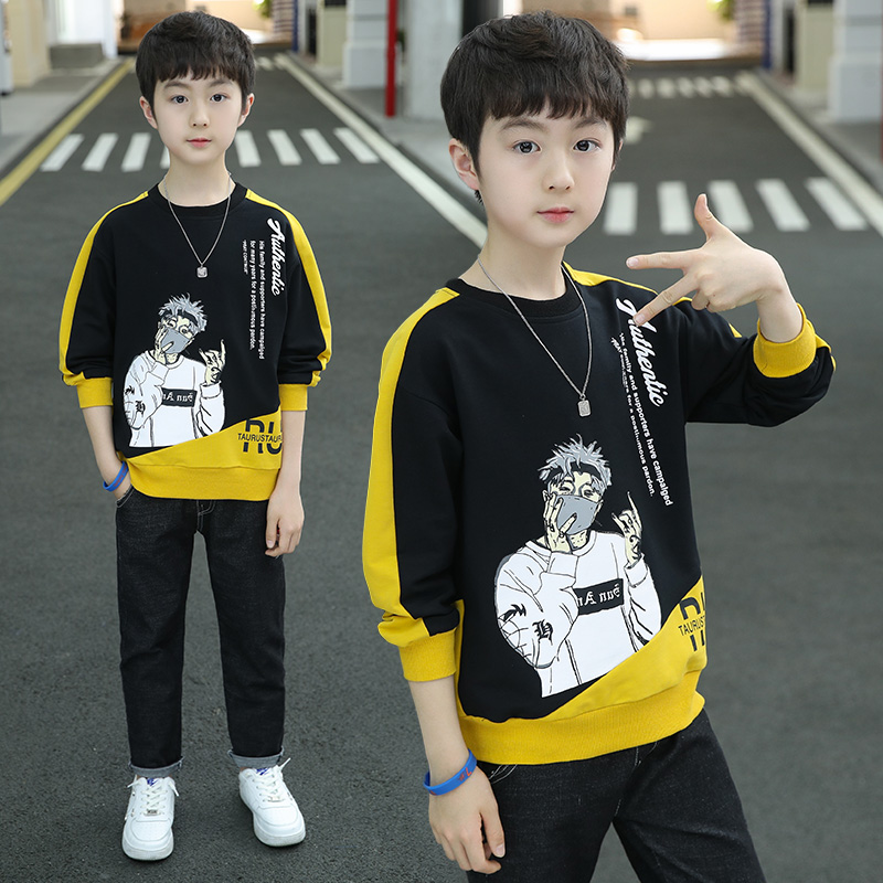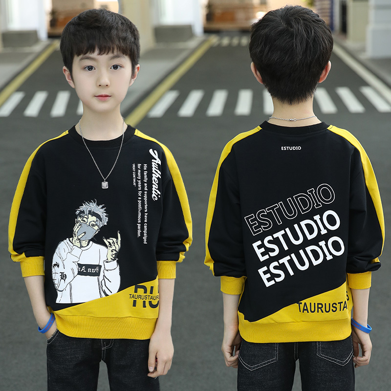 Children's clothing boy's clothing spring clothing new 2022 foreign-style children's blouses round collar internal hitch and loose CUHK child Korean version