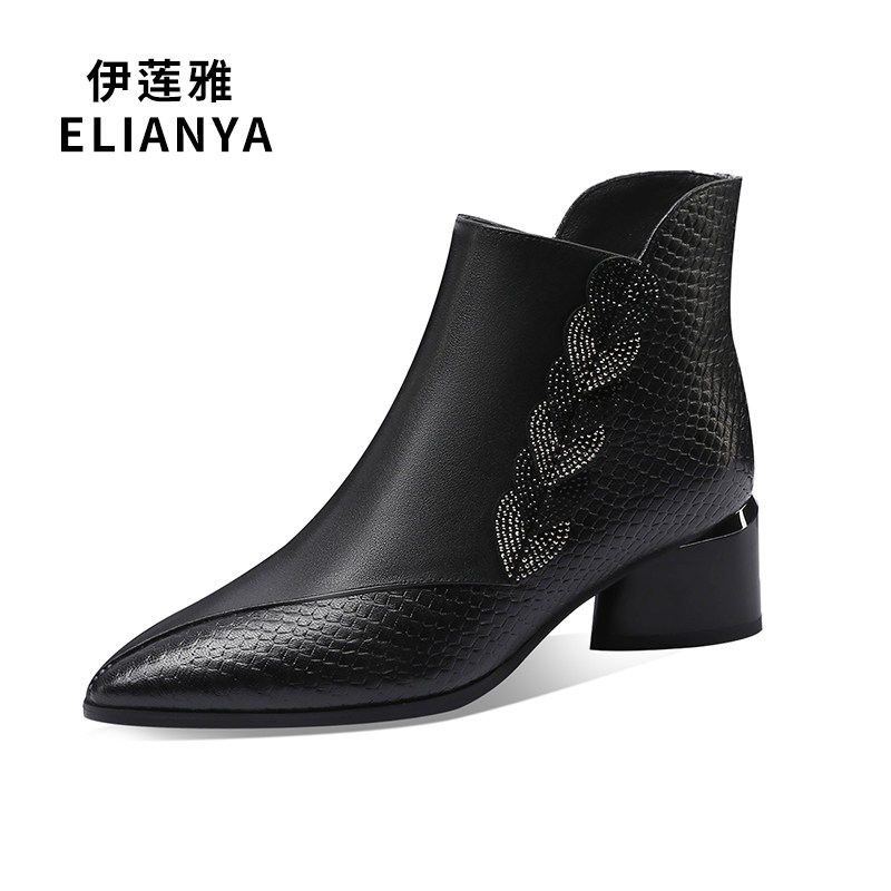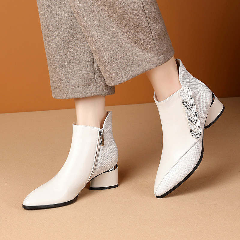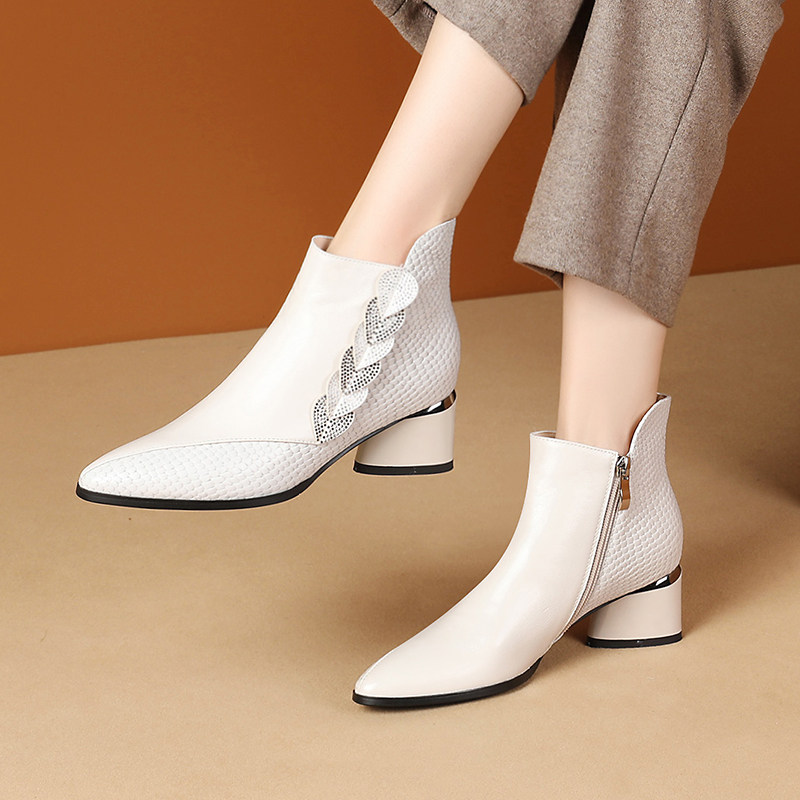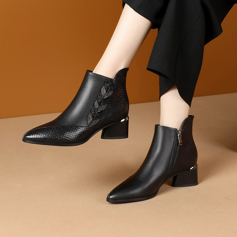 2021 Autumn Winter Women's Boots New Genuine Leather Single Boots Woman with coarse heel short boots 100 lapped water to drill shoes and ankles
