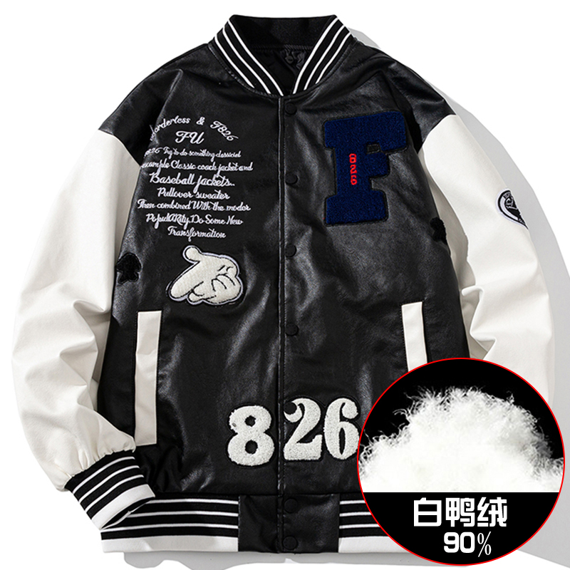 Autumn Winter Down Baseball Suit Jacket Man Loose Thickened Couple Tide Card Jacket Leather Coat Standout Collar Tooling American