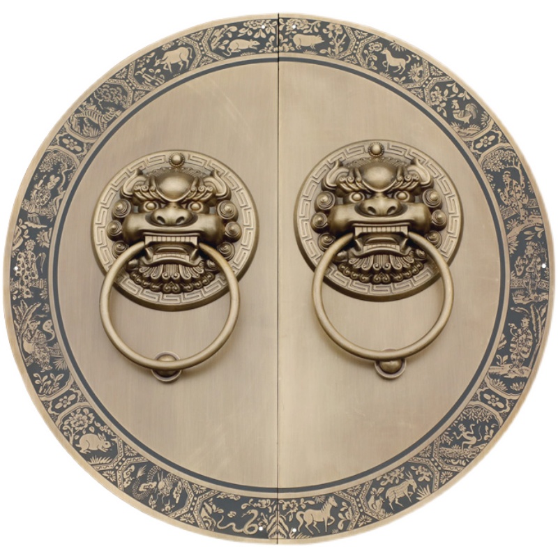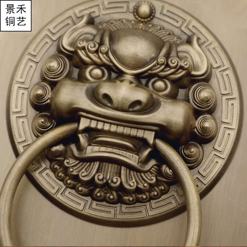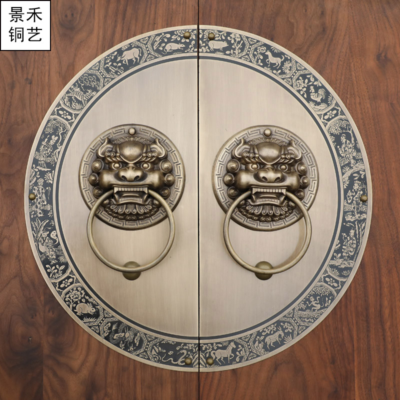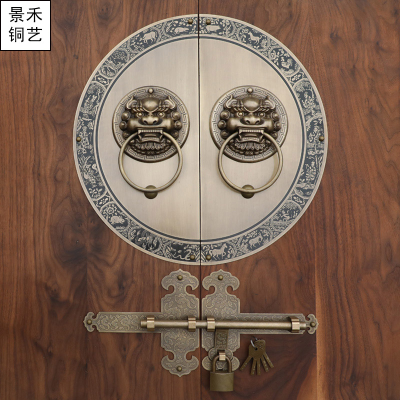Door bolt handle imitation of ancient Chinese animal tiger head lock buckle pure copper lion head wooden door bolt latch round handle