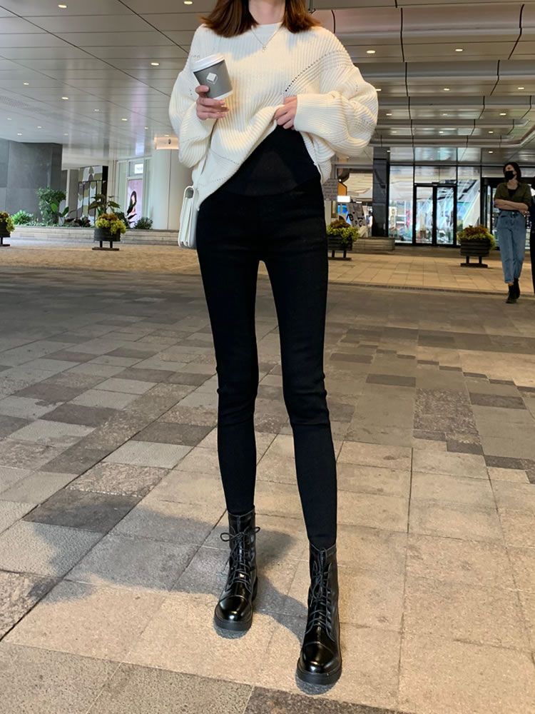 Pregnant women's pants, jeans, women's spring and autumn outer wear, fashionable black pencil cigarette pants, autumn and winter thickening and velvet underwear