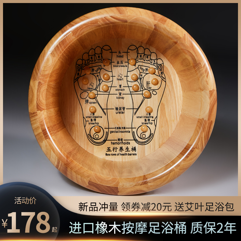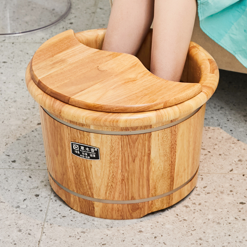 (Red Transport Thick Side Acupoint Massage Bucket) - No cover -H26CM - Delivered Foot Bath Bag (Red Transport Thick Side Acupoint Massage Barrel) - Wood Cover -H26CM - Send Foot Bath Bag (Red Transport Thick Side Acupoints Press