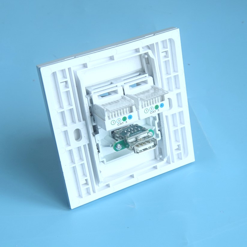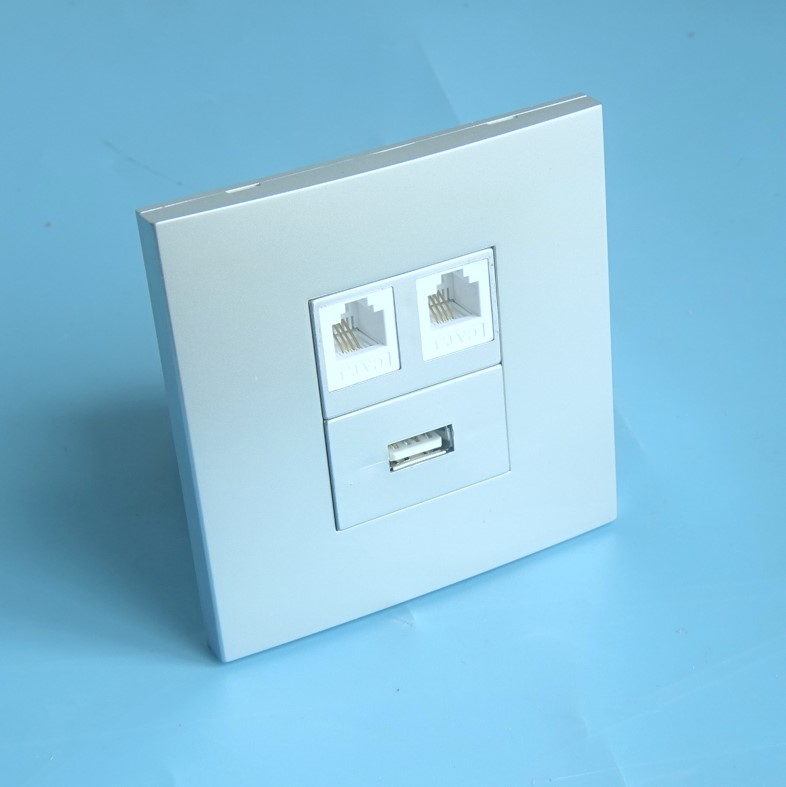 Type 86 silver two-tone two-mouth telephone line four-core voice-free socket USB20 Composition 128-type module panel