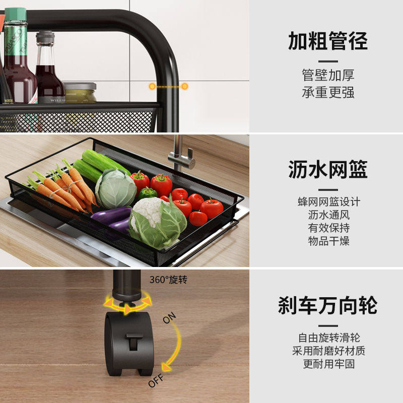 Storage racks for things, kitchen racks, floor-to-ceiling multi-layer movable household trolleys, storage storage racks, vegetables