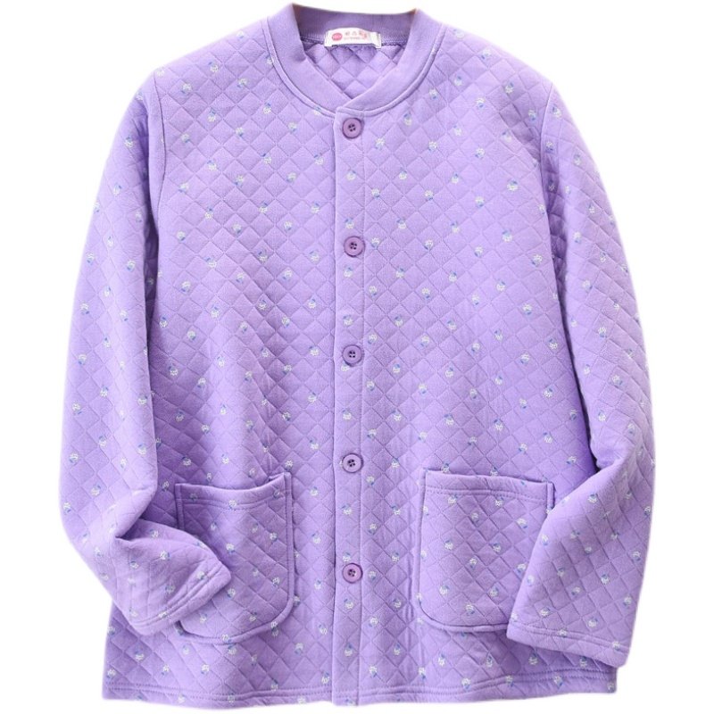 Three-layer warm clothes women's middle-aged and elderly quilted thickened autumn clothes large size plus fat cotton cardigan single piece underwear mother's clothing