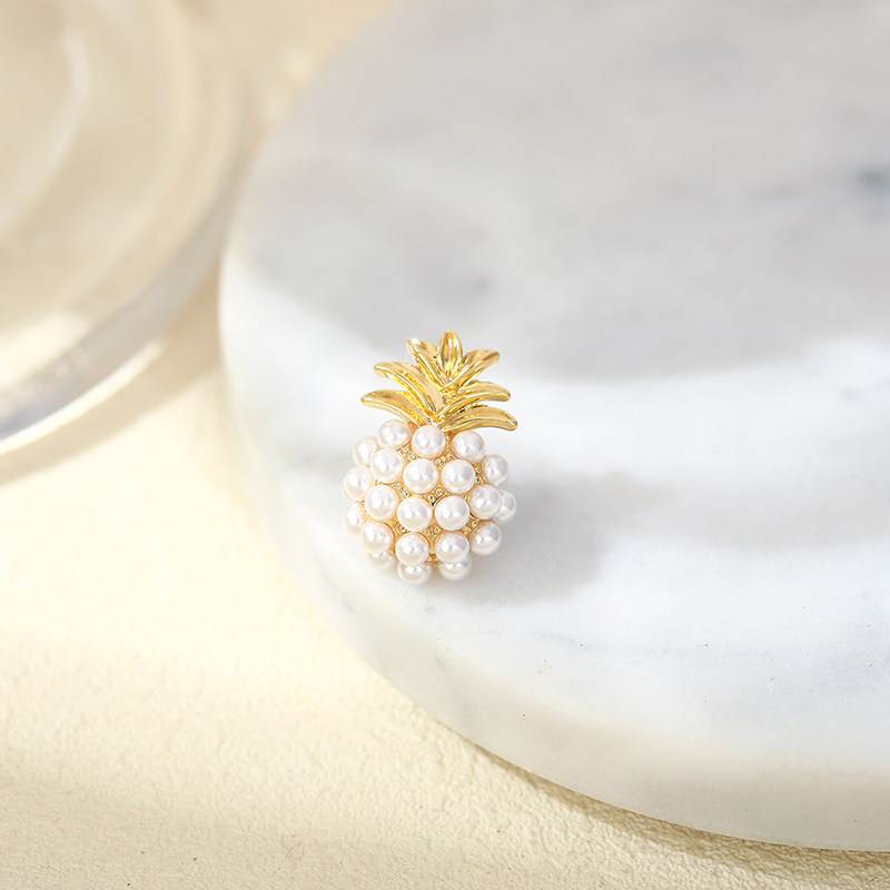 Fashion pearl pineapple brooch ins trendy simple cardigan collar pin high-end anti-light buckle pin personality corsage female