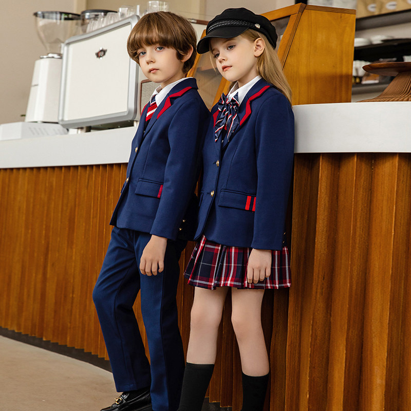 Children's school uniform suit spring and autumn clothing British style primary school class uniform autumn and winter three-piece kindergarten uniform skirt