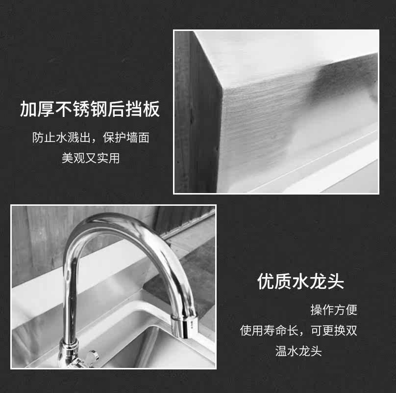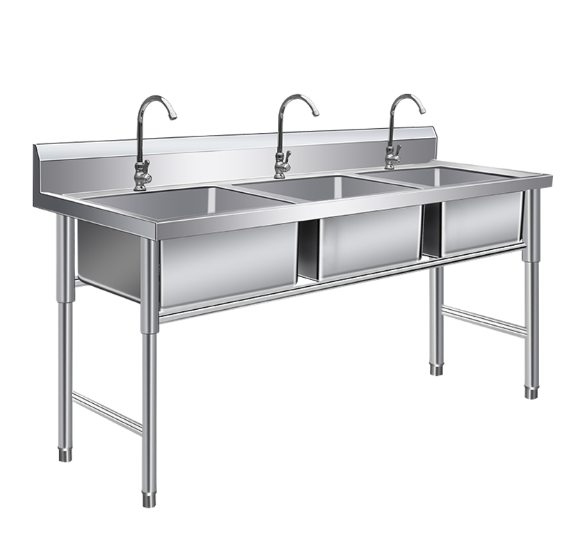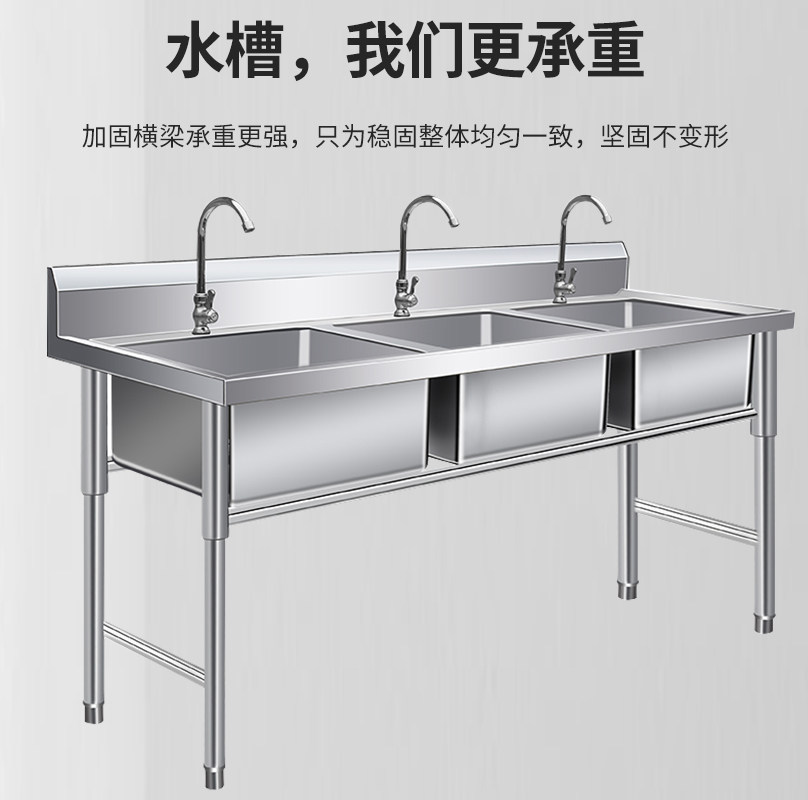 Commercial stainless steel three-connected pool washbasin three-slot washbasin kitchen dishwashing with bracket school dining room canteen