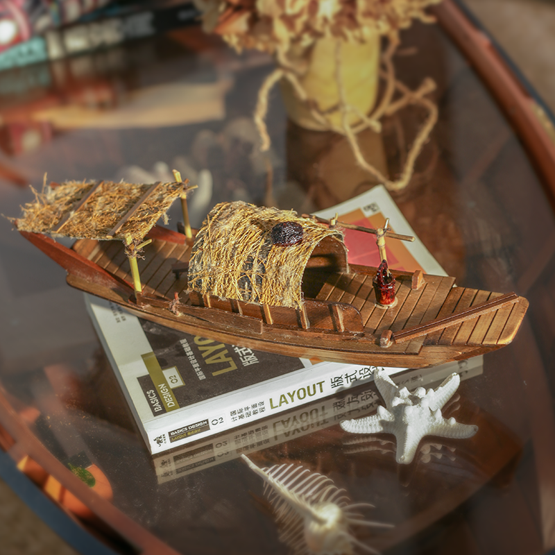 Antique Shaoxing Ugang Ship Guangdong Fenghai Fengyuan Handmade Wooden Sailing Model