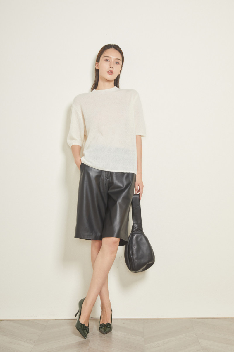 Dreamy cotton candy-like Italian babody yarn comfort soft glutinous cashmere midsleeve round collar knit blouse Women summer