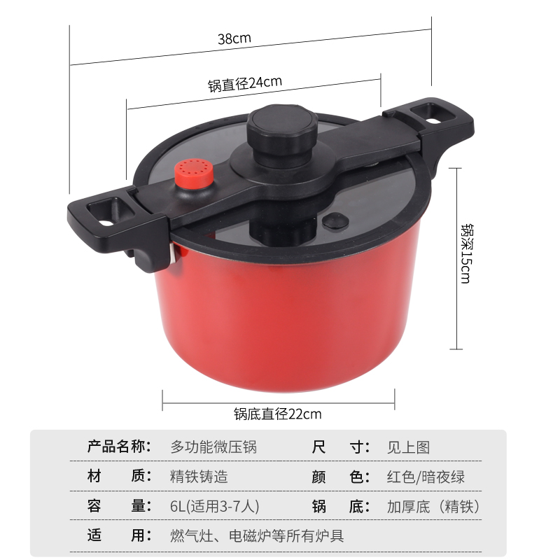 C Section 6L Micro Pressure Cuisine Pan green 6L net red Micro Pressure Stockpot (red) 6L net red Micro Pressure Stockpot (green) 18cm Double-ear-type mini pressure cooker 22c