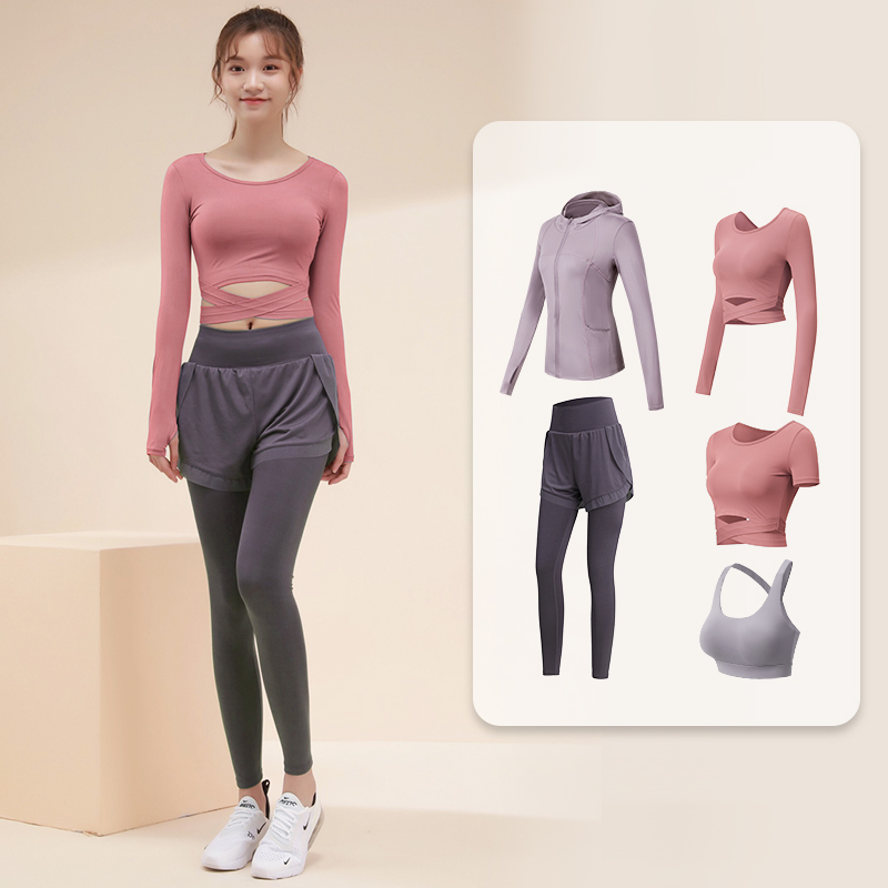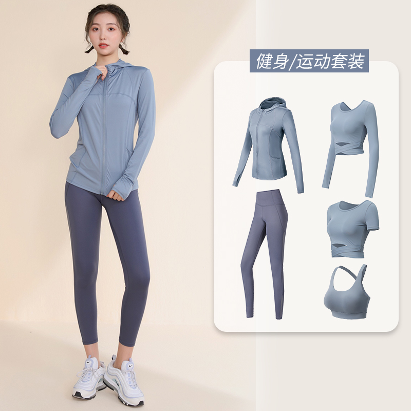 Blue short sleeve four pieces (dark blue leave two long pants) plum sandcolor seven pieces blue long sleeves five pieces (grey blue tight pants dark blue and two long pants) blue six pieces plum sand color long sleeves five pieces