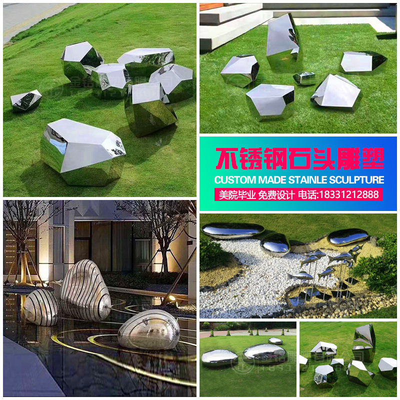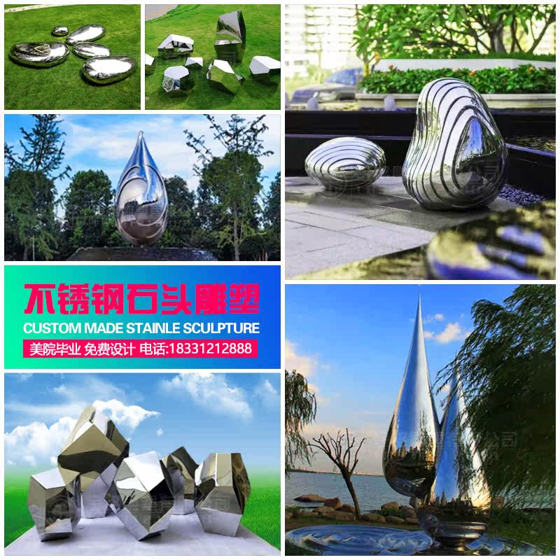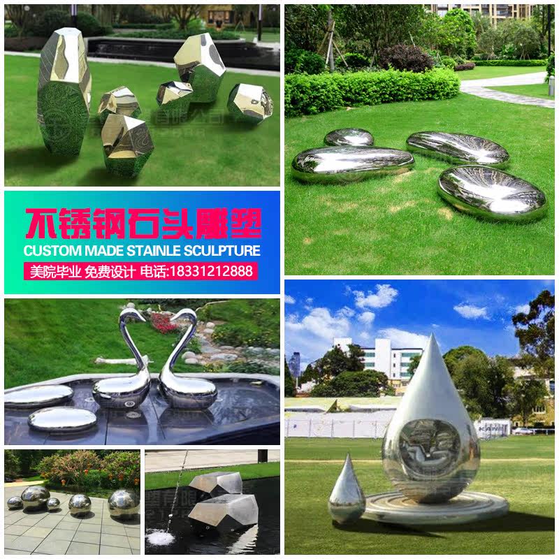 Large outdoor stainless steel mirror water drop sculpture block face stone water spray water ripple landscape custom ornaments