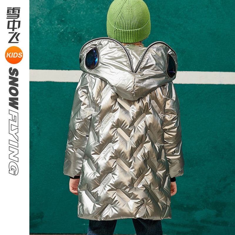 Snowy flying children clothes children's down clothes boy medium long version 2021 new Spiderman glasses bright face down clothes damp
