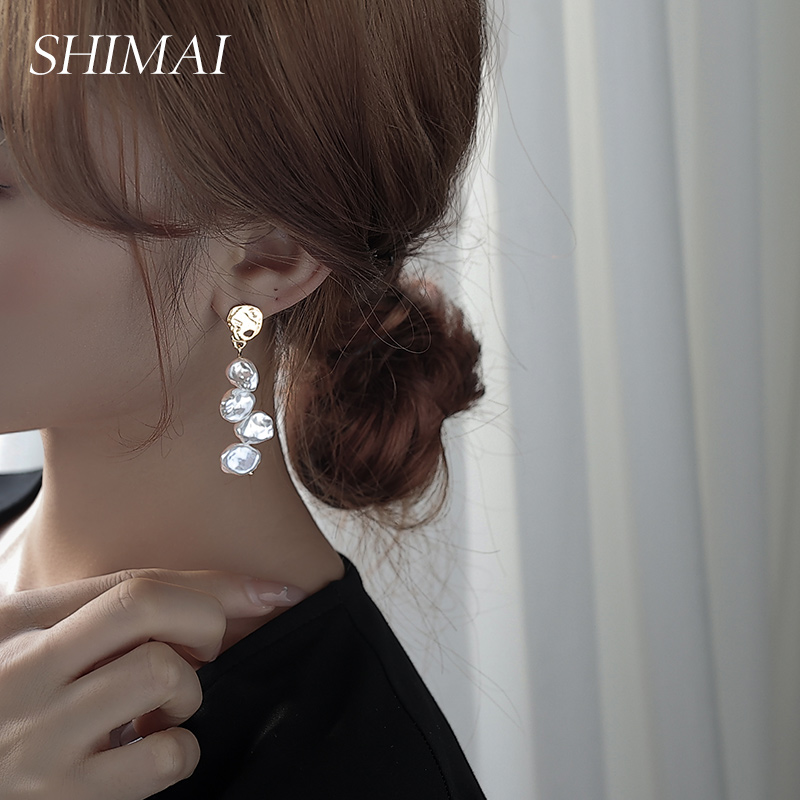 Baroque ear female summer temperament personality appears thin earrings 925 silver needle and flow soda pearl ear crash