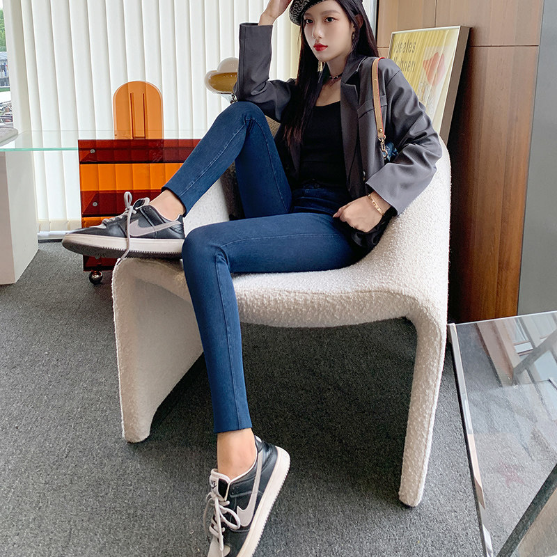 Tobacco Grey Denim Inner Lap Pants Woman Spring Autumn Winter Outwear Thin sheet Slim High Waist Small Black Pants Small Feet Pencil Magic Pants