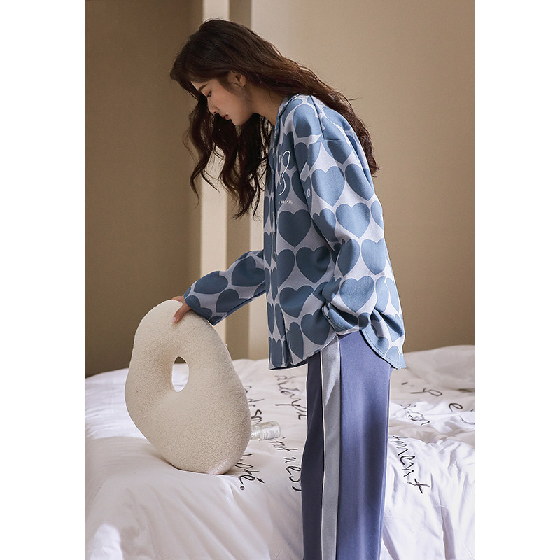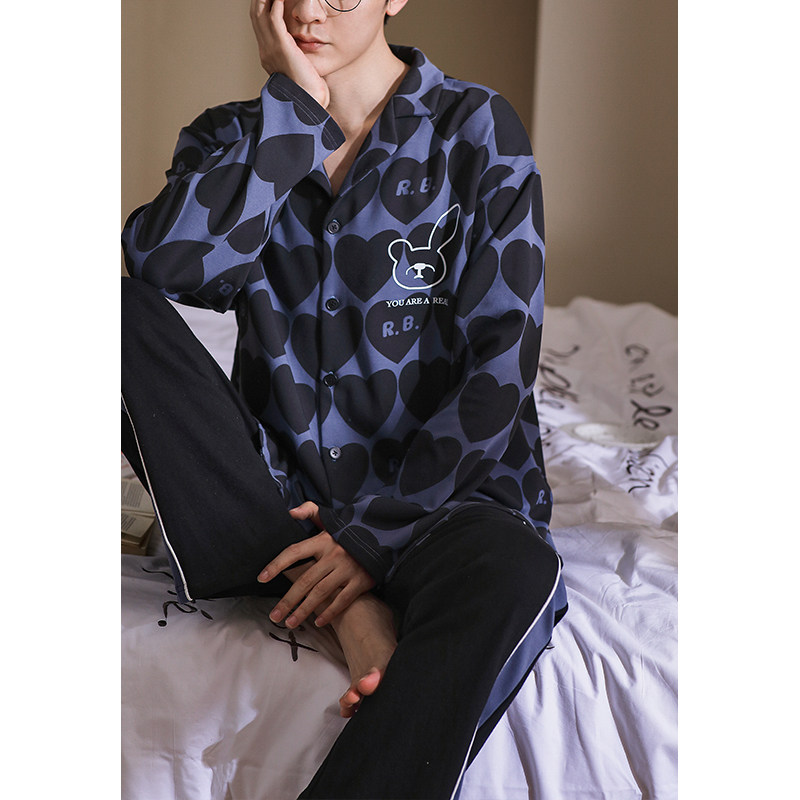 Lovers pyjamas women's spring autumn style pure cotton long sleeves cute trendy cardiopouses for men's autumn and winter two sets of outwear