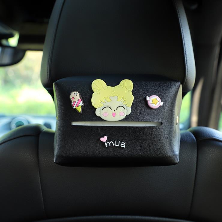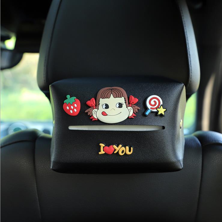 Car tissue box cartoon folding girl car seat back hanging toilet paper box multifunctional armrest box napkin box
