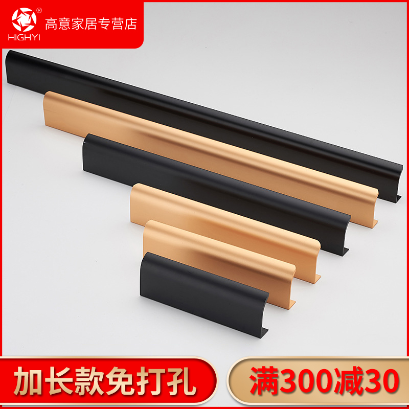 Invisible long handle One meter black light lavish large wardrobe drawer cabinet door modern minimalist small cabinet gold door handle