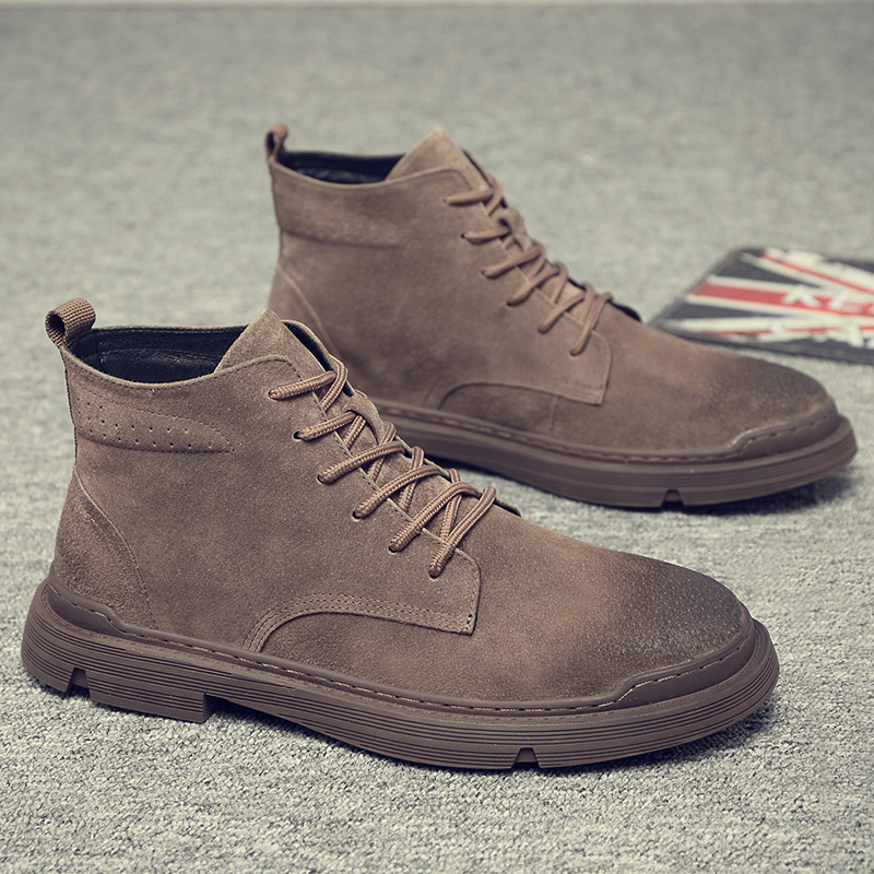 Trendy Martin boots men's autumn and winter breathable tall British style leather heightening men's shoes large size casual overalls short boots