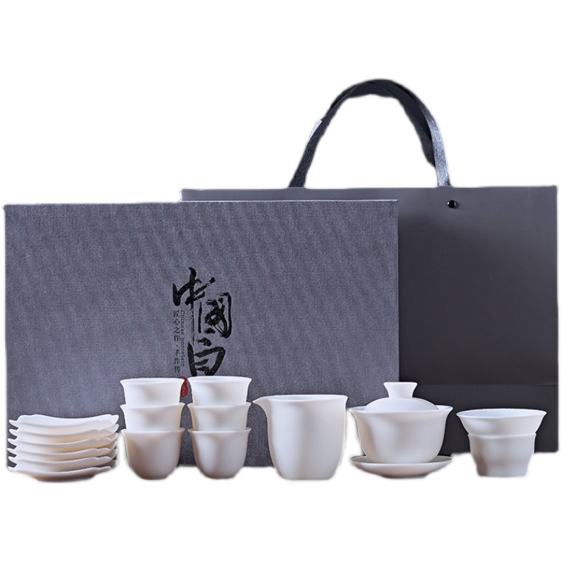 DECLEOR's new white porcelain tea set suet jade cover bowl home complete set gift Chinese high-end teapot