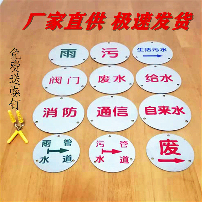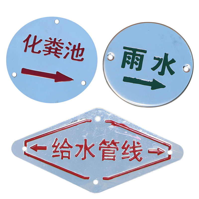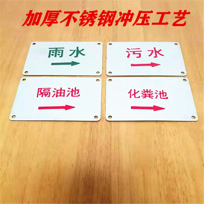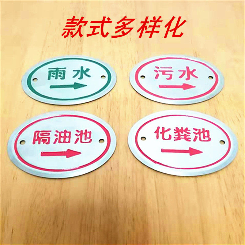 Stainless steel rain sewage waste water well cover marking rain sewage identification card gas water supply pipe towards ground sign plate